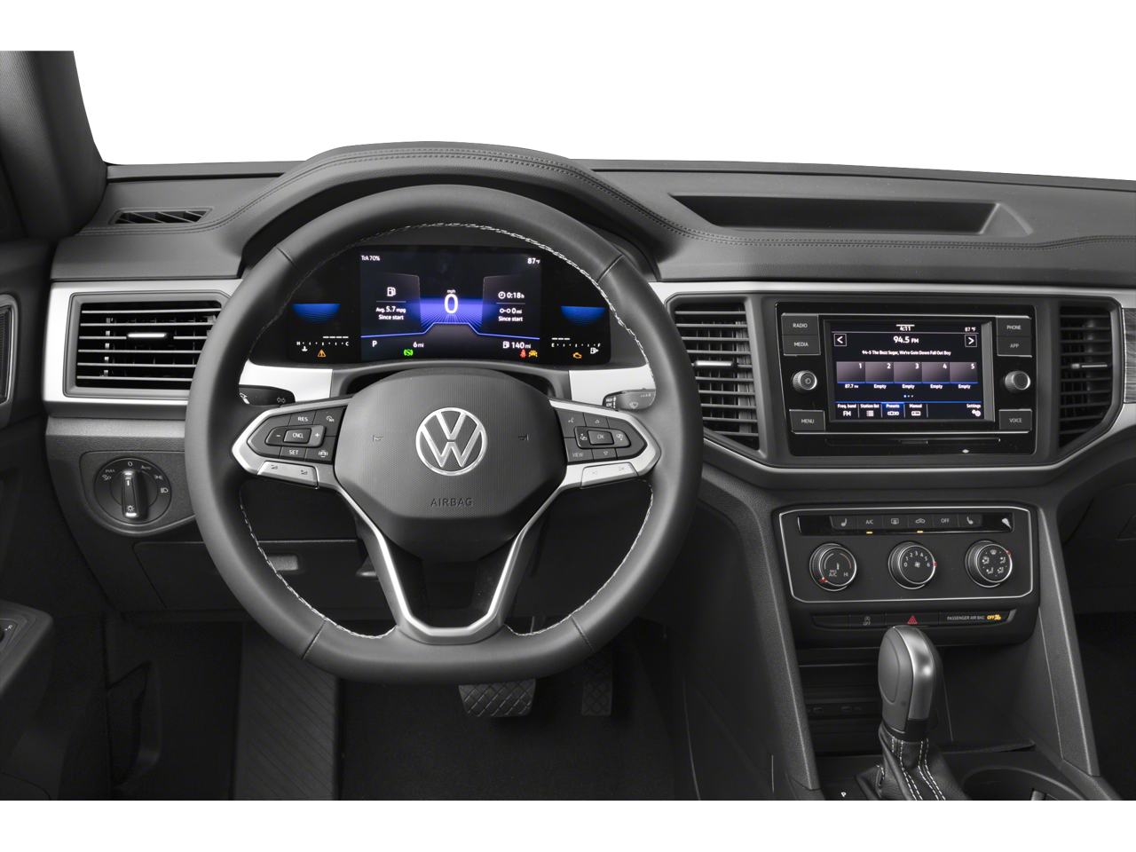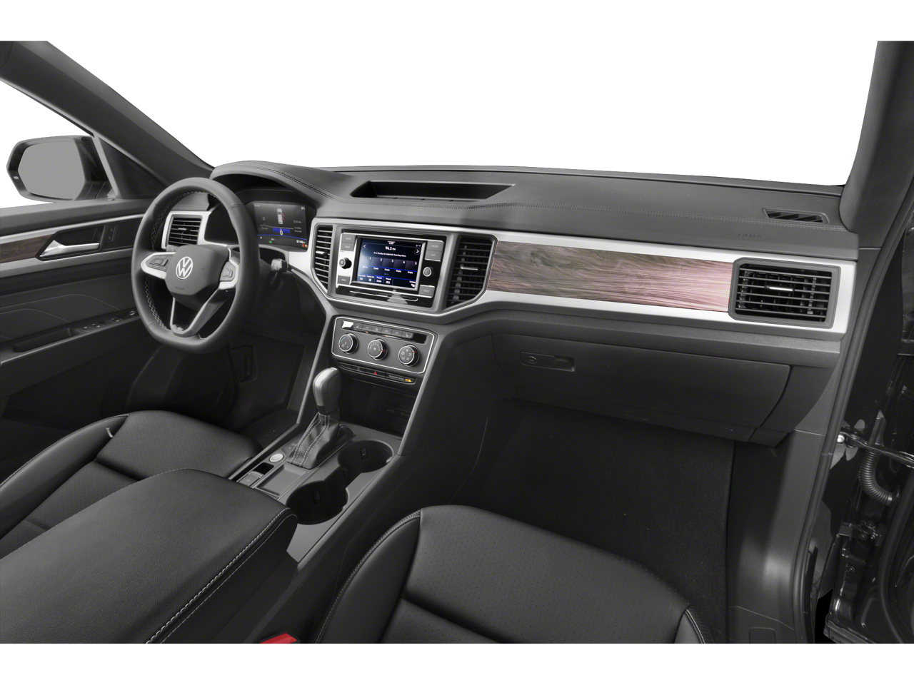 Black 2023 Volkswagen Atlas Cross Sport 2.0T SE AWD 8-Speed Automatic with Tiptronic 2.0L TSI 3.60 Axle Ratio, 4-Wheel Disc Brakes, 6 Speakers, ABS brakes, Air Conditioning, Alloy wheels, Auto-dimming Rear-View mirror, Brake assist, Bumpers: body-color, Compass, Delay-off headlights, Driver door bin, Driver vanity mirror, Dual front impact airbags, Dual front side impact airbags, Electronic Stability Control, Emergency communication system: VW Car-Net Safe & Secure 5-year, Exterior Parking Camera Rear, Four wheel independent suspension, Front anti-roll bar, Front Bucket Seats, Front Center Armrest, Front fog lights, Front reading lights, Fully automatic headlights, Heated Comfort Front Bucket Seats, Heated door mirrors, Heated front seats, Illuminated entry, Leather Shift Knob, Low tire pressure warning, Occupant sensing airbag, Outside temperature display, Overhead airbag, Overhead console, Panic alarm, Passenger door bin, Passenger vanity mirror, Perforated V-Tex Leatherette Seating Surfaces, Power door mirrors, Power driver seat, Power steering, Power windows, Radio data system, Radio: Composition Color w/6.5" Touchscreen, Rain sensing wipers, Rear anti-roll bar, Rear reading lights, Rear seat center armrest, Rear window defroster, Rear window wiper, Remote keyless entry, Security system, Speed control, Speed-sensing steering, Split folding rear seat, Spoiler, Standard Suspension, Steering wheel mounted audio controls, Tachometer, Telescoping steering wheel, Tilt steering wheel, Traction control, Trip computer, Turn signal indicator mirrors, Variably intermittent wipers, Wheels: 18" x 8J 5-Spoke 2-Tone Machined Alloy.