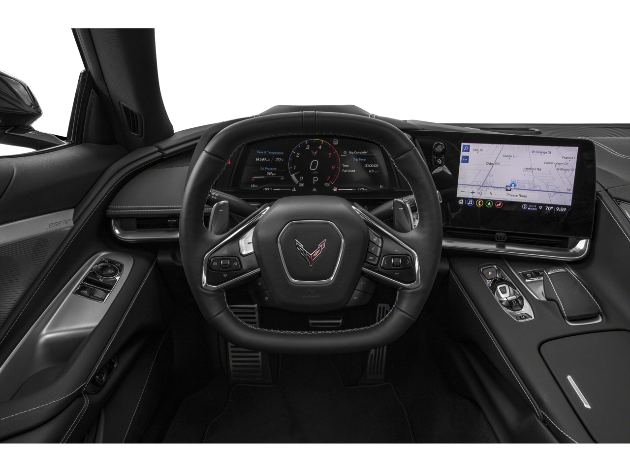 Clean CARFAX. Black 2024 Chevrolet Corvette Stingray 1LT RWD 8-Speed Dual Clutch 6.2L V8 10 Speakers, 4-Wheel Disc Brakes, 8-Way Power Driver Seat Adjuster, 8-Way Power Passenger Seat Adjuster, ABS brakes, Air Conditioning, Alloy wheels, AM/FM radio: SiriusXM, Auto High-beam Headlights, Auto-dimming Rear-View mirror, Automatic temperature control, Black Exhaust Tips, Black Lug Nuts (LPO), Black Wheel Center Caps w/Gray Stingray Logo (LPO), Black Wheel Locks (LPO), Body-Color Removable Roof Panel, Brake assist, Bumpers: body-color, Compass, Delay-off headlights, Driver door bin, Driver vanity mirror, Dual front impact airbags, Dual front side impact airbags, Edge Red-Painted Calipers, Electronic Stability Control, Emergency communication system: OnStar and Chevrolet connected services capable, Four wheel independent suspension, Front anti-roll bar, Front Bucket Seats, Front Center Armrest, Front dual zone A/C, Front reading lights, Fully automatic headlights, GT1 Bucket Seats, Heated door mirrors, Illuminated entry, Leather Shift Knob, Leather steering wheel, Low tire pressure warning, Low-Profile Rear Spoiler & Front Splitter, Mulan Lthr Seating Surfaces w/Perforated Inserts, Navigation System, Occupant sensing airbag, Outside temperature display, Overhead console, Panic alarm, Passenger door bin, Passenger vanity mirror, Performance Exhaust w/Stainless-Steel Tips, Power door mirrors, Power driver seat, Power passenger seat, Power steering, Power windows, Preferred Equipment Group 1LT, Premium audio system: Chevrolet Infotainment 3 Premium, Radio data system, Radio: Chevrolet Infotainment 3 Premium System, Rear anti-roll bar, Rear window defroster, Remote keyless entry, Speed control, Speed-sensing steering, Sport steering wheel, Steering wheel mounted audio controls, Tachometer, Telescoping steering wheel, Tilt steering wheel, Traction control, Trip computer, Turn signal indicator mirrors, Variably intermittent wipers, Voltmeter, Wheels: 19" x 8.5" Fr/20" x 11" Rr Bright Silver, Wheels: 19" x 8.5" Fr/20" x 11" Rr Carbon Flash.